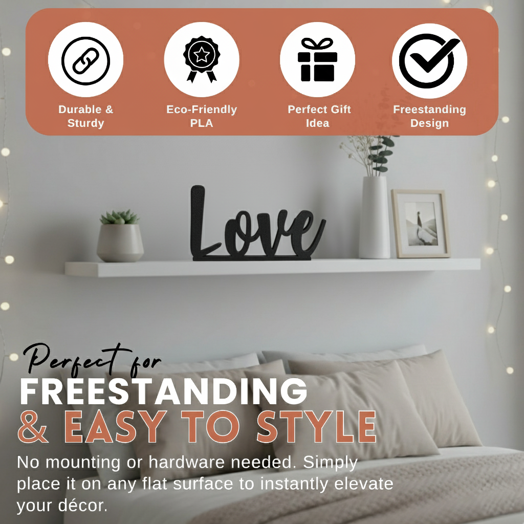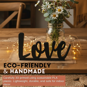 Bring warmth and meaning to your home with this Love Freestanding Sign, a timeless tabletop accent that celebrates togetherness and love. Crafted from eco-friendly PLA plastic with a premium textured finish, this lightweight yet sturdy piece complements any interior style — from modern minimalist to cozy rustic.