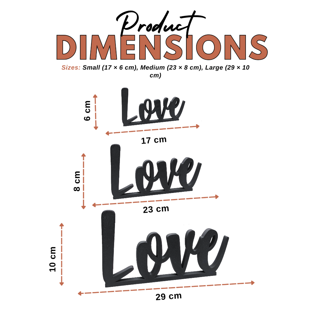Black Love Tabletop Word Sign – Minimalist 3D Printed Home Decoration | Eco-Friendly PLA, 3 Sizes, Modern Style
