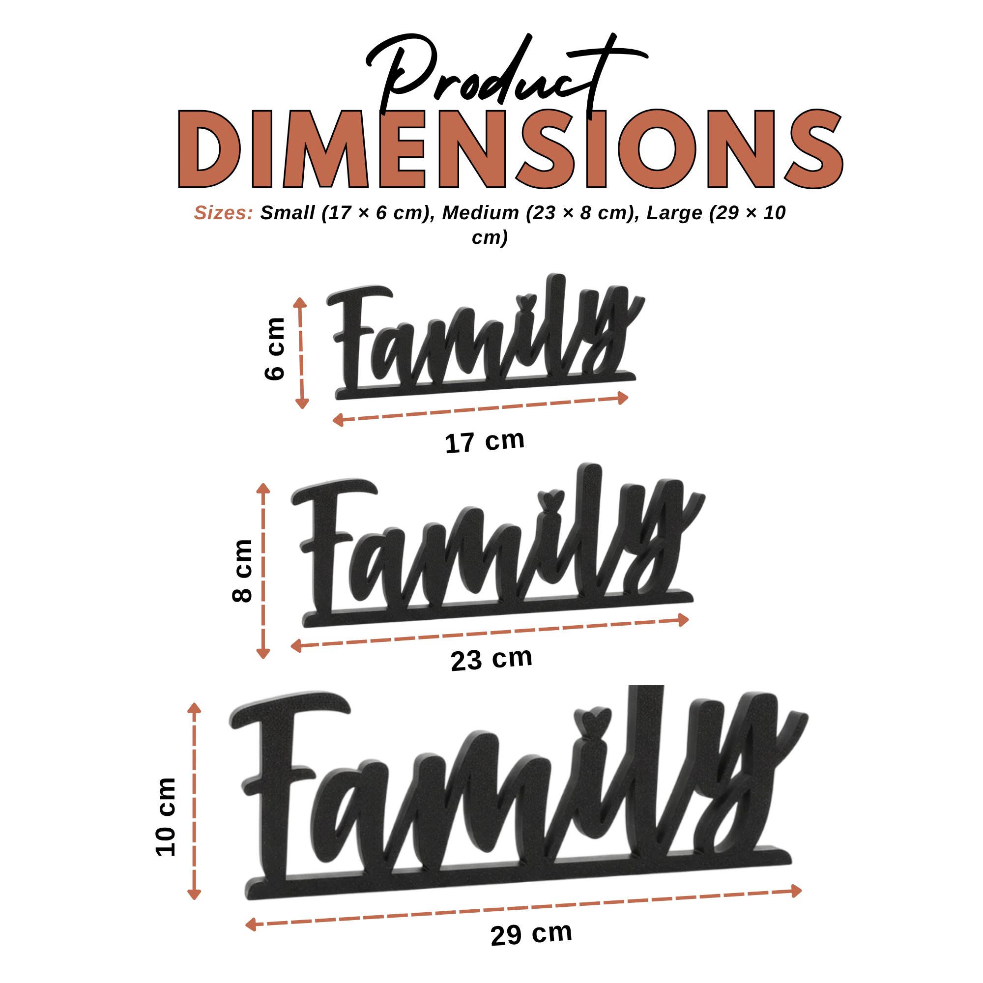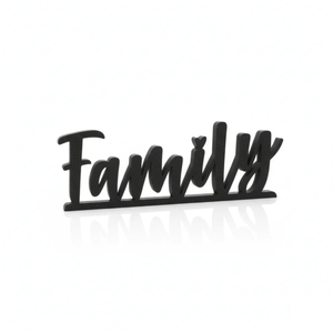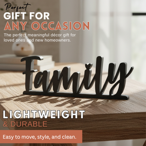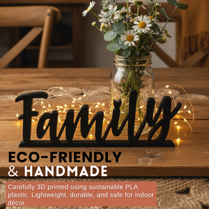 Black Family Tabletop Word Sign – Minimalist 3D Printed Home Decoration | Eco-Friendly PLA, 3 Sizes, Modern Style