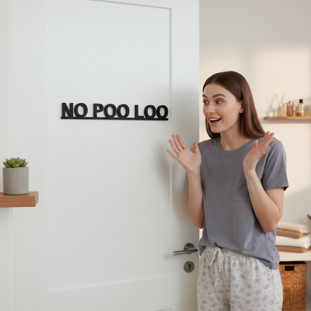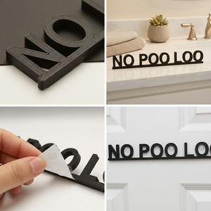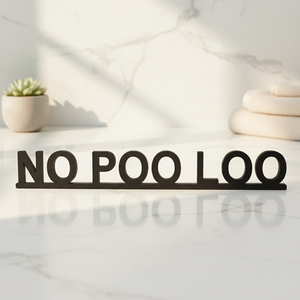 Bring a touch of playful sophistication to your home with this modern black Nordic-style “NO POO LOO” door topper. Designed to sit neatly above your bathroom door, this minimalist sign adds both charm and clarity to your space. With its clean lines and sleek black finish, it fits seamlessly into Scandinavian and contemporary interiors, enhancing your décor with subtle style.